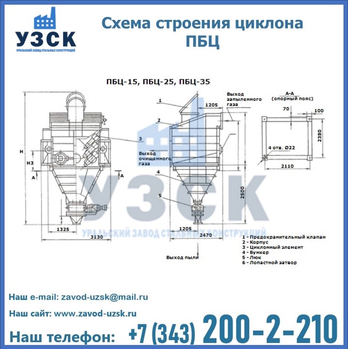 Завод «УЗСК» в Актау предлагает приобрести циклоны ПБЦ и прочие устройства, полностью укомплектованные и готовые к эксплуатации. Мы гарантируем соответствие оборудования всем требованиям ГОСТ и ТУ, износостойкость и высокую производительность предлагаемого оборудования. Уральский Завод Стальных Конструкций изготавливает и продает надежное, эффективное и производительное оборудование, имеющее длительную гарантию и большой эксплуатационный ресурс. Если требуется изготовить циклон нестандартных размеров, то такой вариант выполнения заказа тоже предусмотрен, так как предприятие имеет собственные производственные площади и надежных поставщиков. На все поставляемое или производимое оборудование имеются чертежи и прочая техническая документация. Заказать и купить циклоны или прочее оборудование высокого качества и по доступной цене можно через наш сайт или по указанному в разделе «Контакты» телефону.