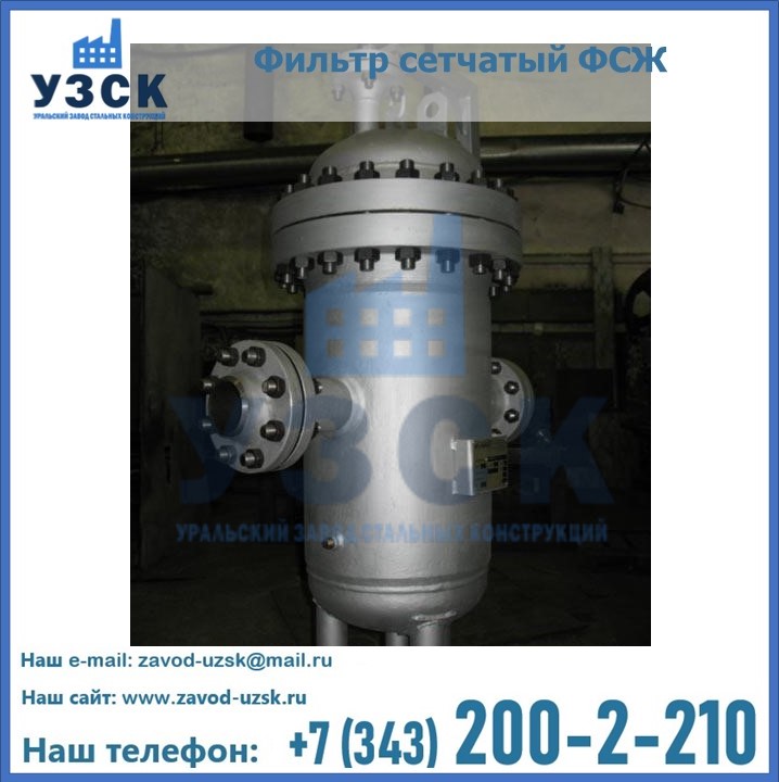 Очистку перекачиваемых жидкостей на предприятиях нефтяной, пищевой, горнорудной, фармацевтической и других отраслей промышленности эффективно выполнять с помощью жидкостного сетчатого фильтра — емкостное оборудование цилиндрической формы со съемной крышкой и элементом фильтрации внутри. Оснащенные им всасывающие линии насосных станций и установок защищены от проникновения твердых частиц в функциональные узлы гидравлической системы. Оборудование служит для перекачивания токсичных, агрессивных и иных эмульсий, суспензий, жидкостей. Купить фильтр сетчатый жидкостный ФСЖ в Актау с гарантией производителя предлагает «Уральский завод стальных конструкций». Мы выполняем проектирование и изготовление ФСЖ по индивидуальным требованиям (климатическая зона, транспортируемая жидкость).