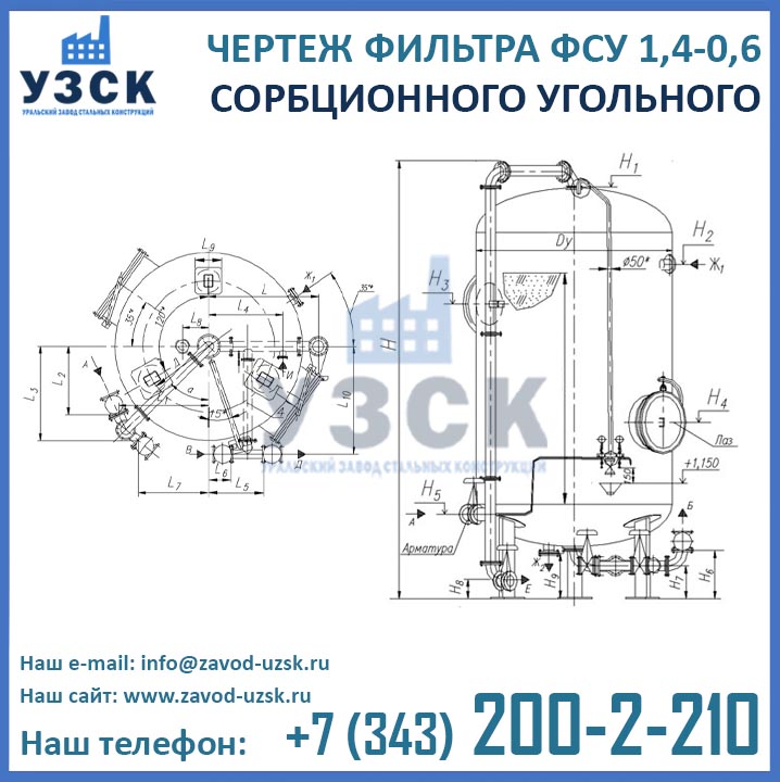 Если вы ищете фильтры ФСУ-1,4-0,6 в Актау от изготовителя, то Вы на правильном пути! Уральский завод стальных конструкций – непосредственный производитель сорбционных фильтров ФСУ, предлагающий самые выгодные цены на ФСУ-1.4-0.6 в Актау. По окончании процесса производства угольные фильтры проходят гидравлические испытания пробным давлением 0,9 МПа на аттестованном гидростенде, находящимся в собственности завода УЗСК. Мы гарантируем высокое качество выпускаемой продукции, и в этом уже убедились ведущие предприятия промышленного сектора России и стран ЕАЭС (см. раздел «Наши клиенты»).