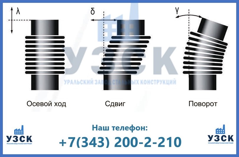 Таким образом, компенсатор может либо растягиваться, либо сжиматься, деформироваться поперечно или изгибаться при незначительных перемещениях, которые могут составлять около нескольких десятков сантиметров или градусов. Реакция устройства зависит от типа оказанного на него воздействия, но при этом он в любом случае остается герметичным.
