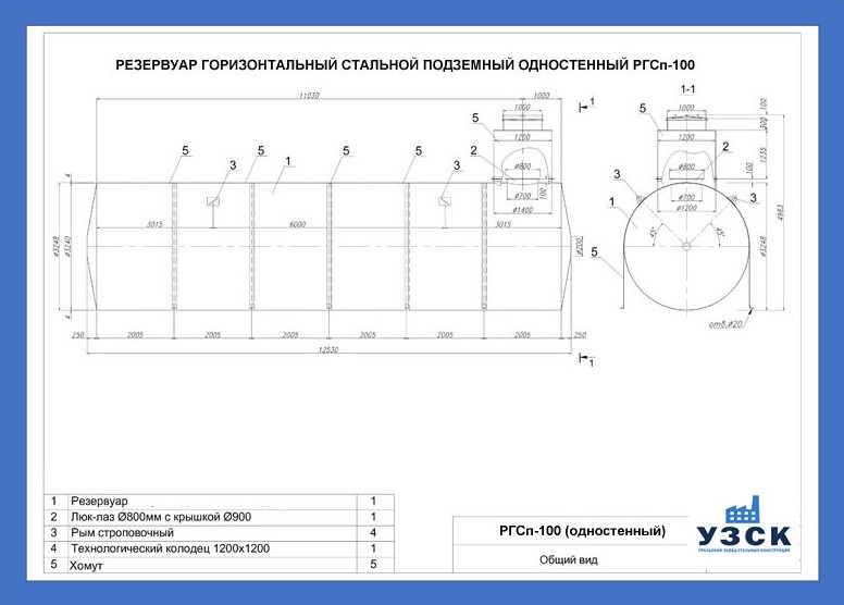 РГСДн-100: горизонтальный резервуар двустенный наземного расположения;